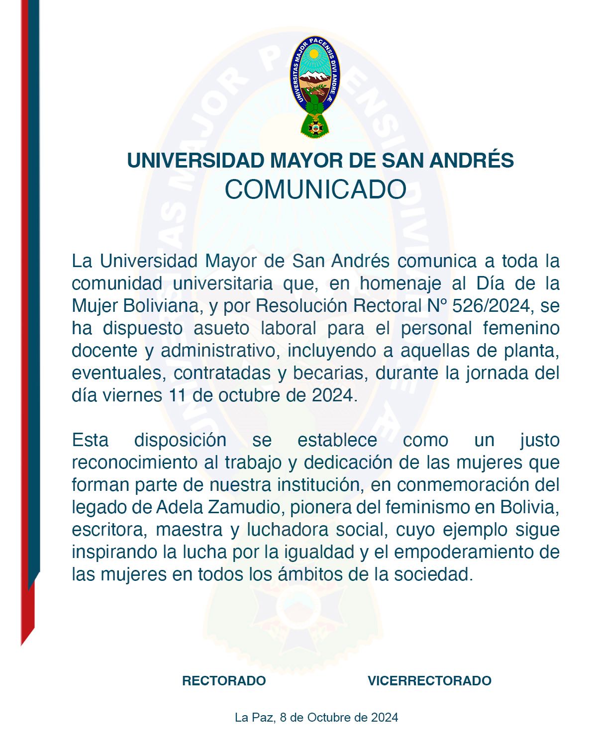 RECTORADO La Paz, 8 de octubre de 2024